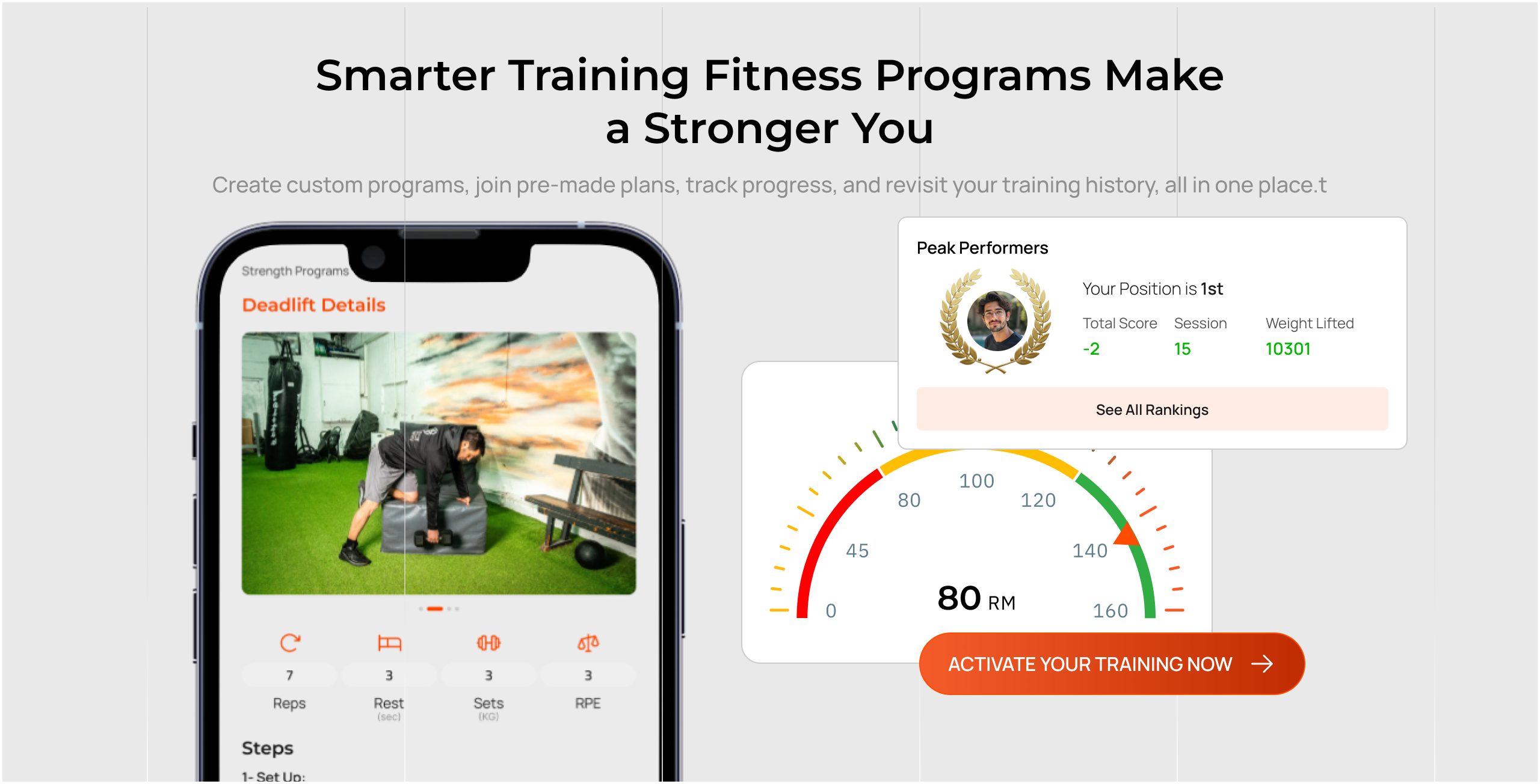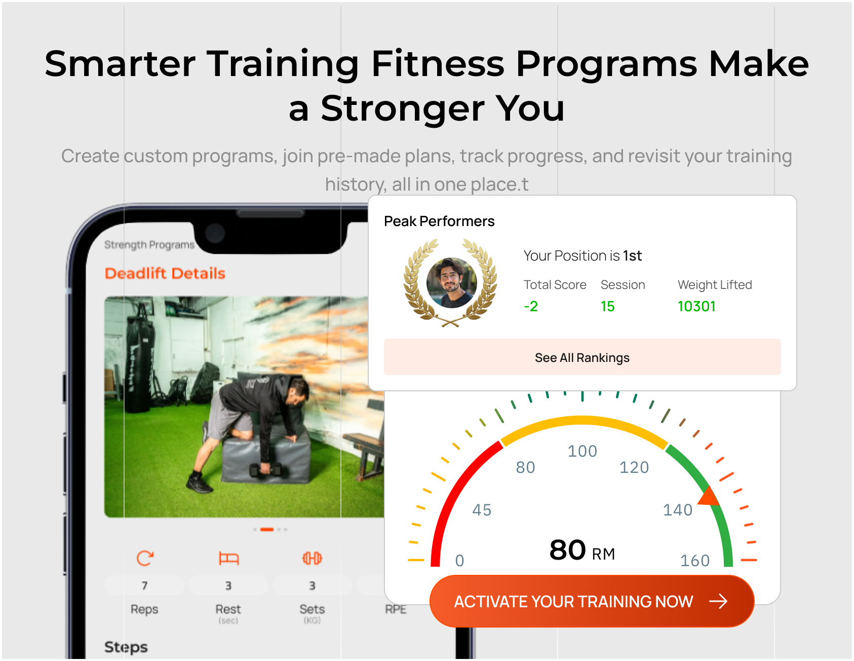 Access workouts, visualize lifts, and climb the leaderboard with a dashboard built to keep you focused and driven.